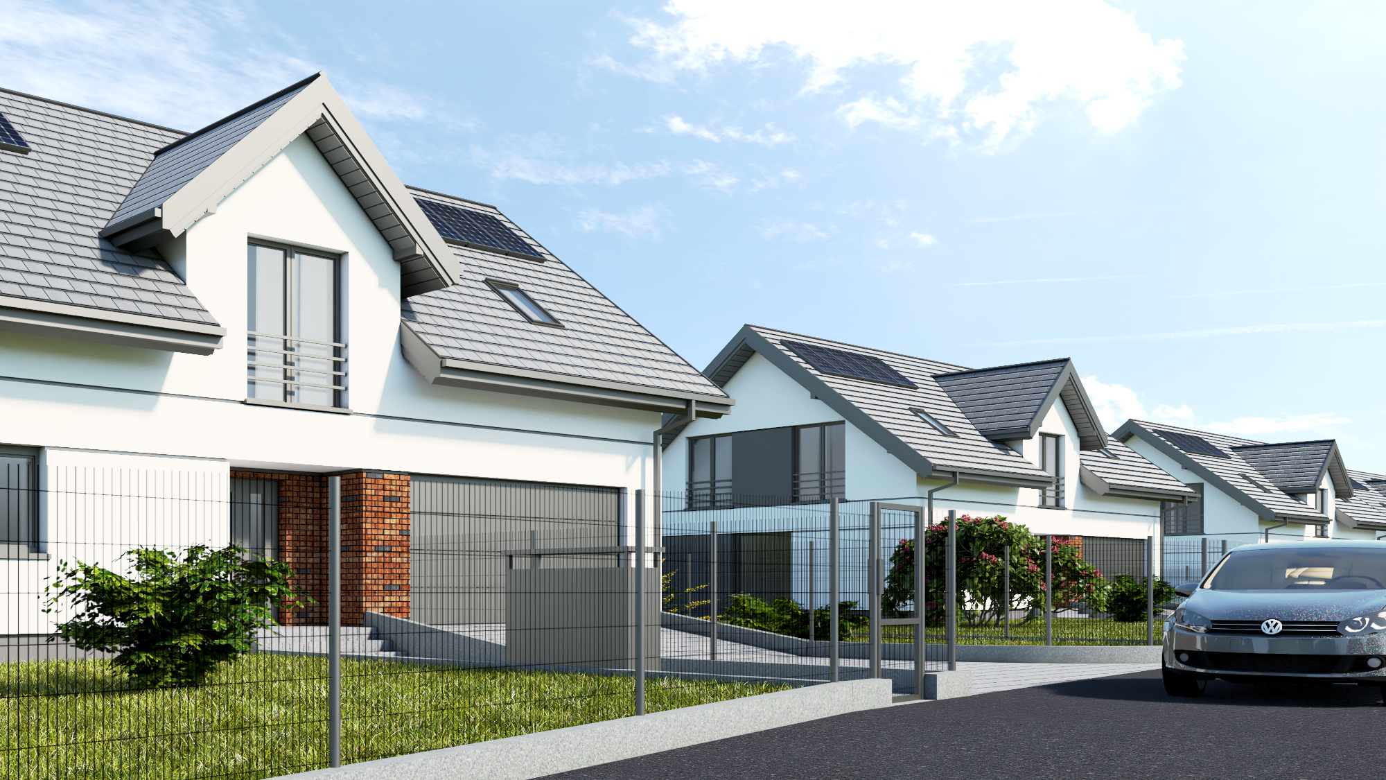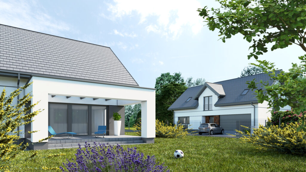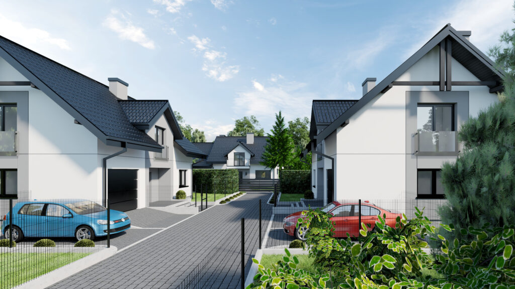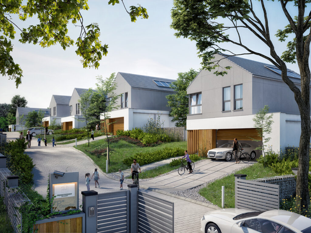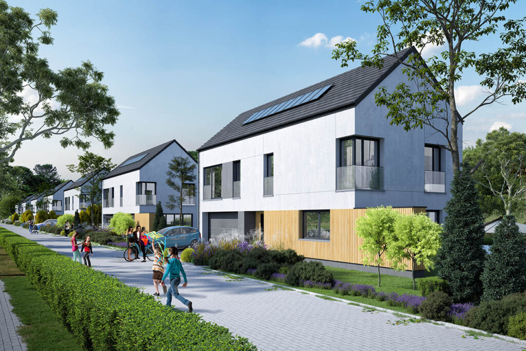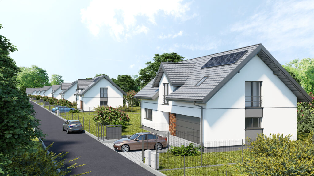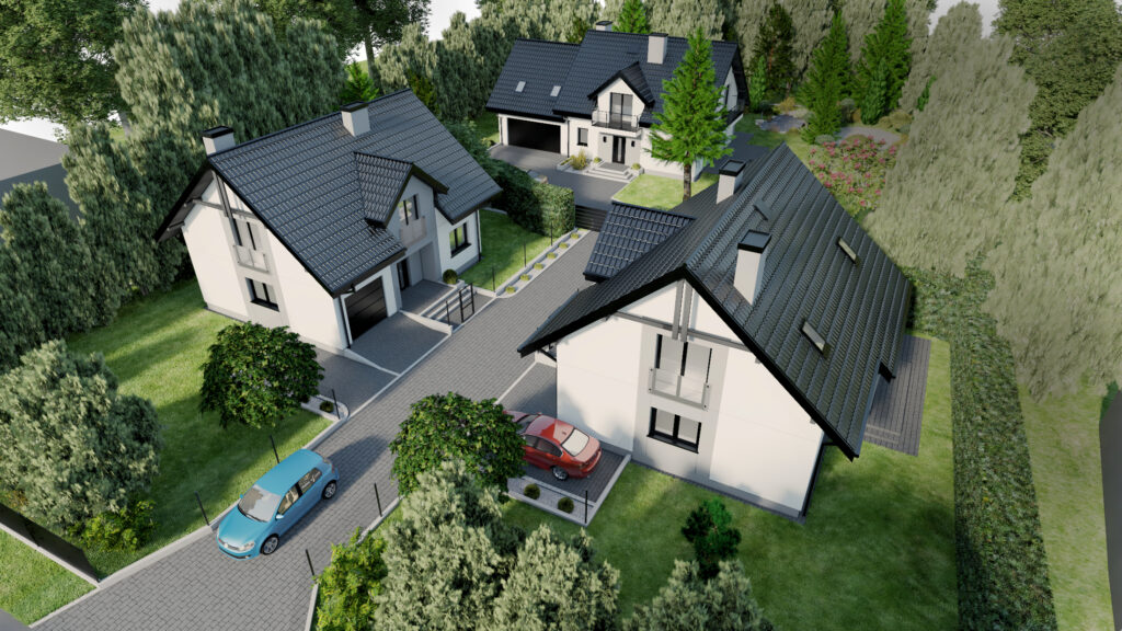 - Sześć domów jednorodzinnych wolnostojących