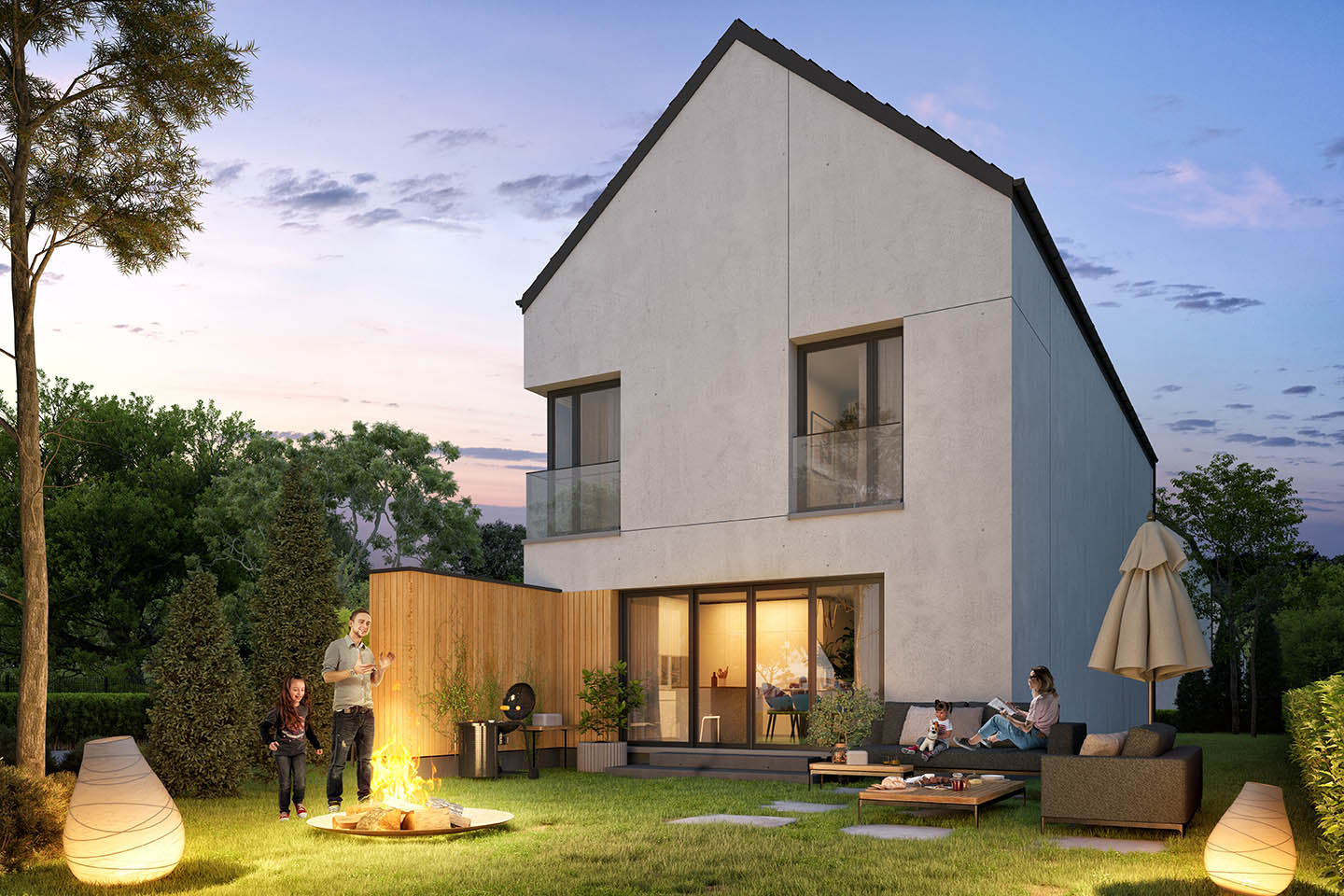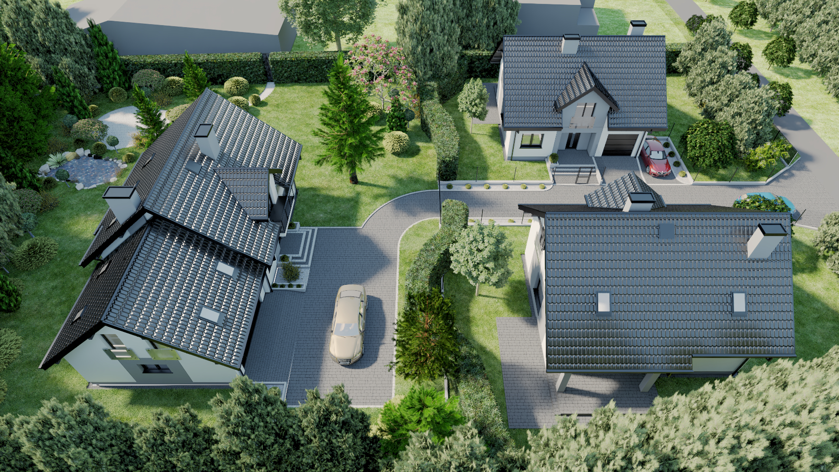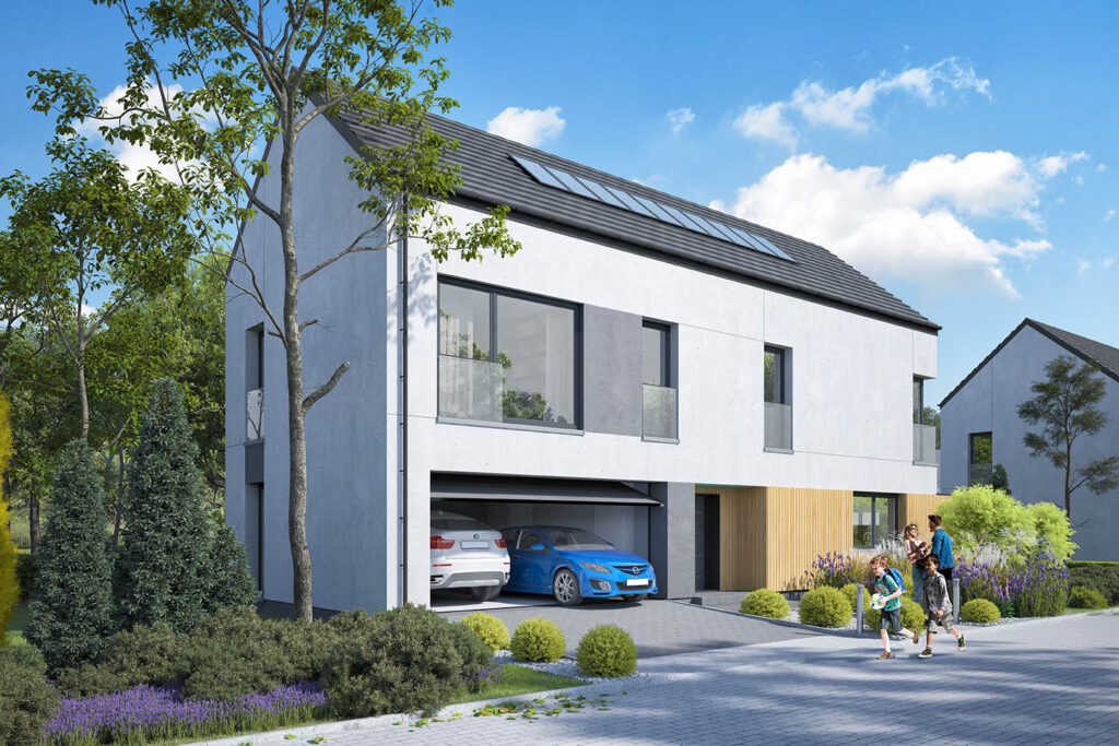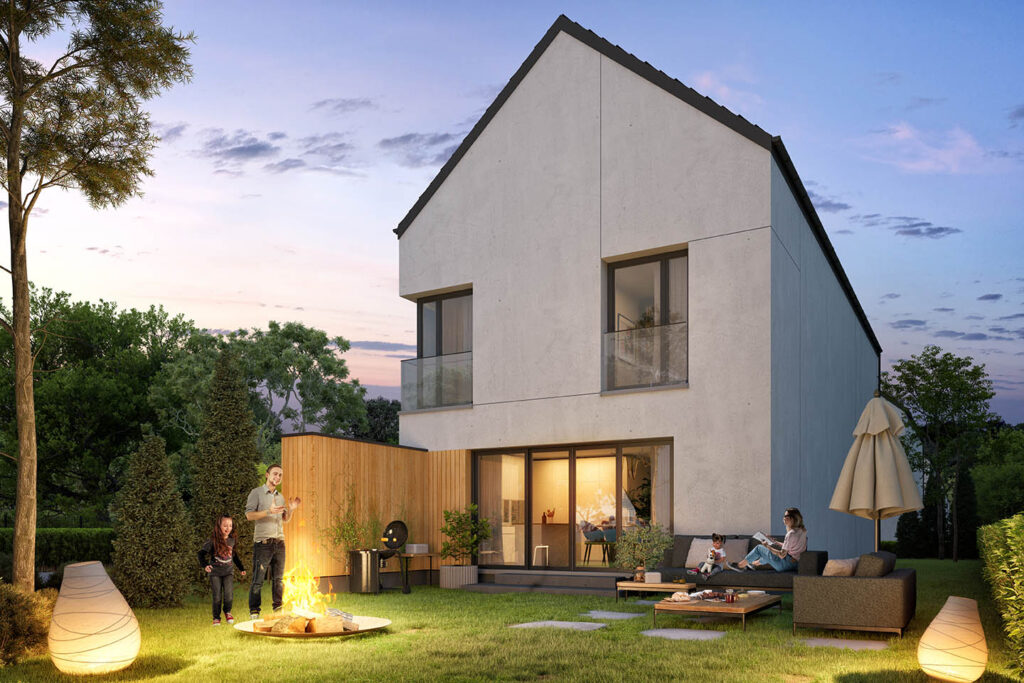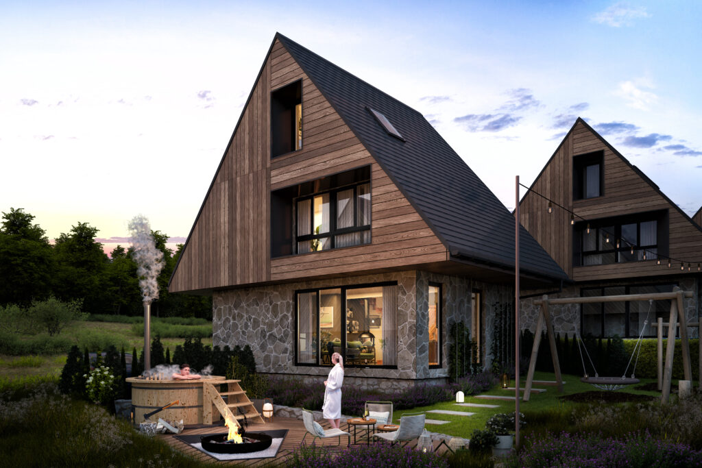 - Sześć domów jednorodzinnych wolnostojących