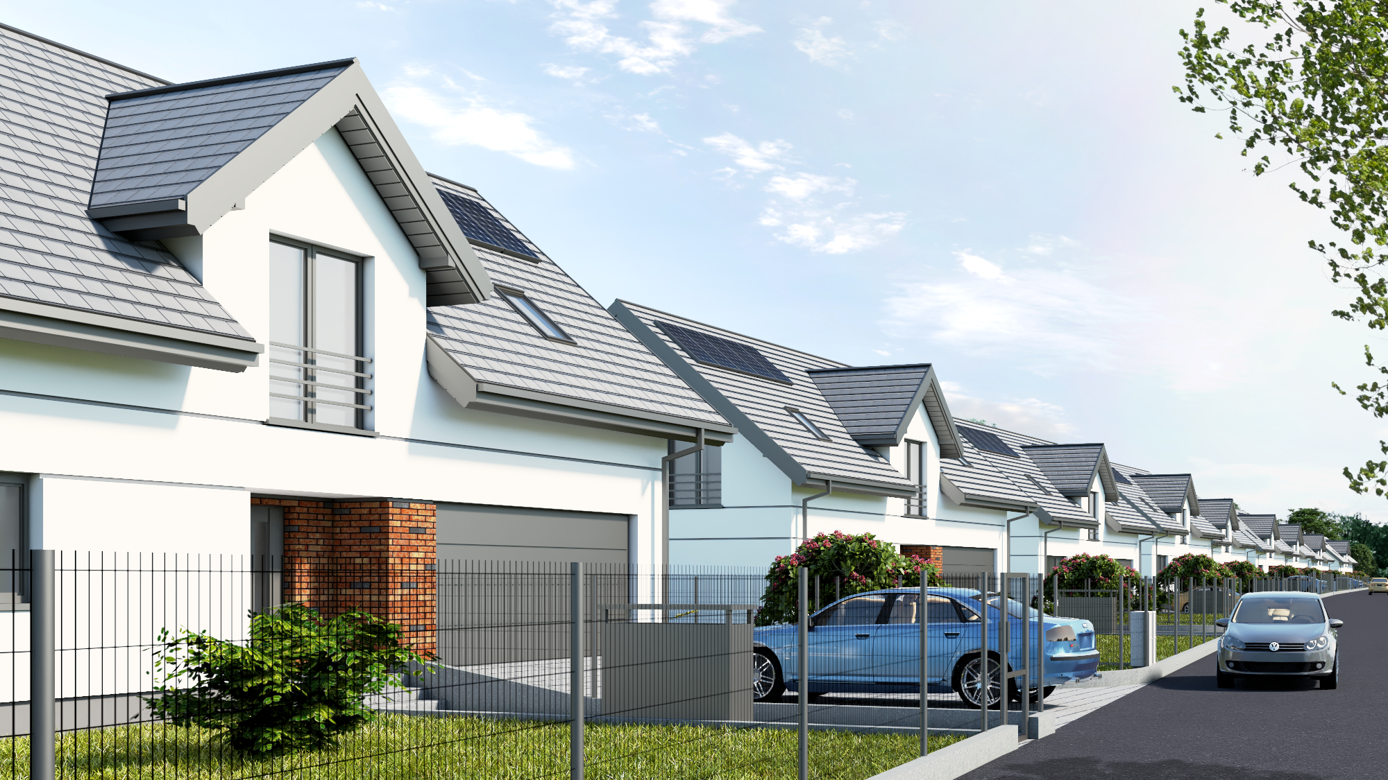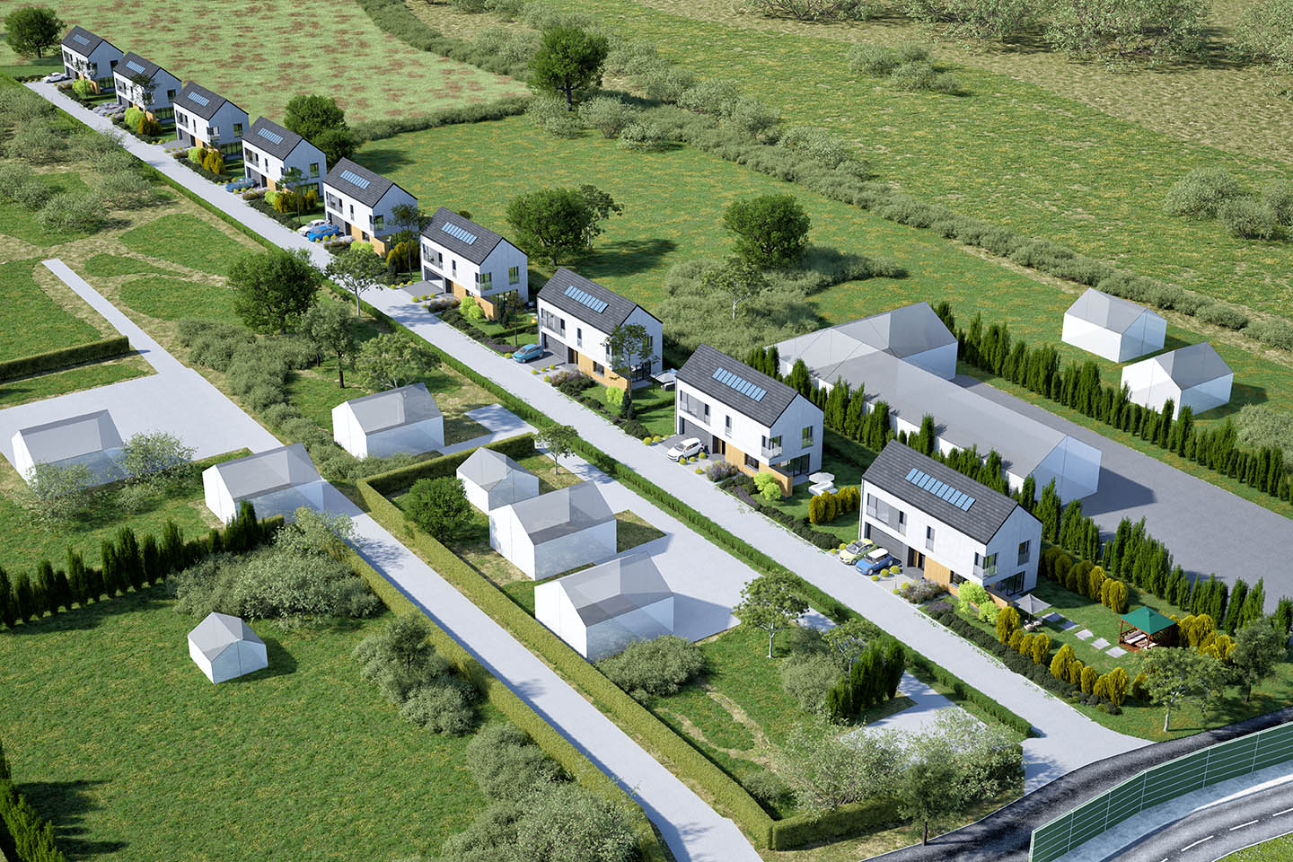 - Dziewięć domów jednorodzinnych wolnostojących